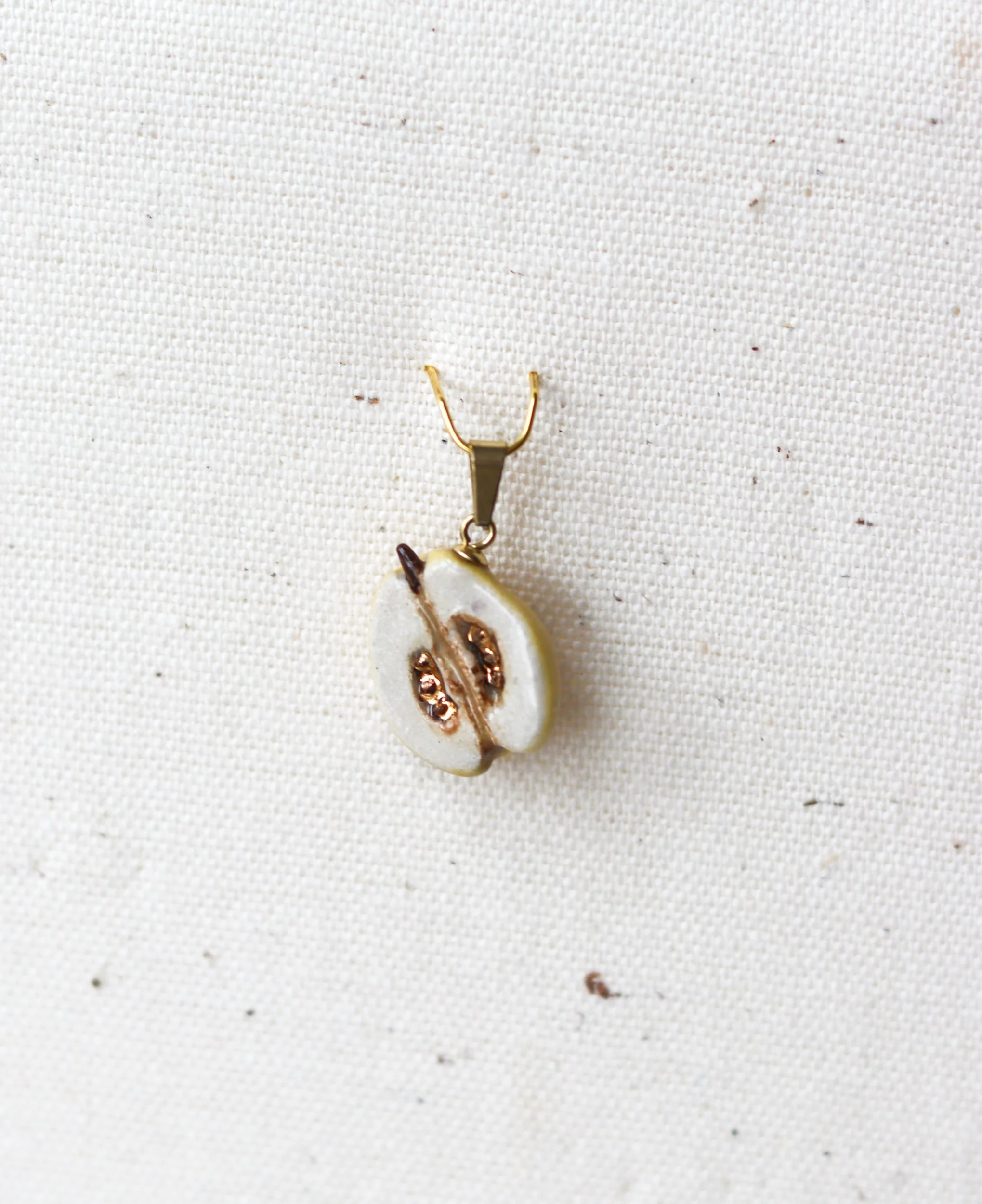 Stoneware ceramic with 24k gold detailing on seeds, with gold plated bail attachment