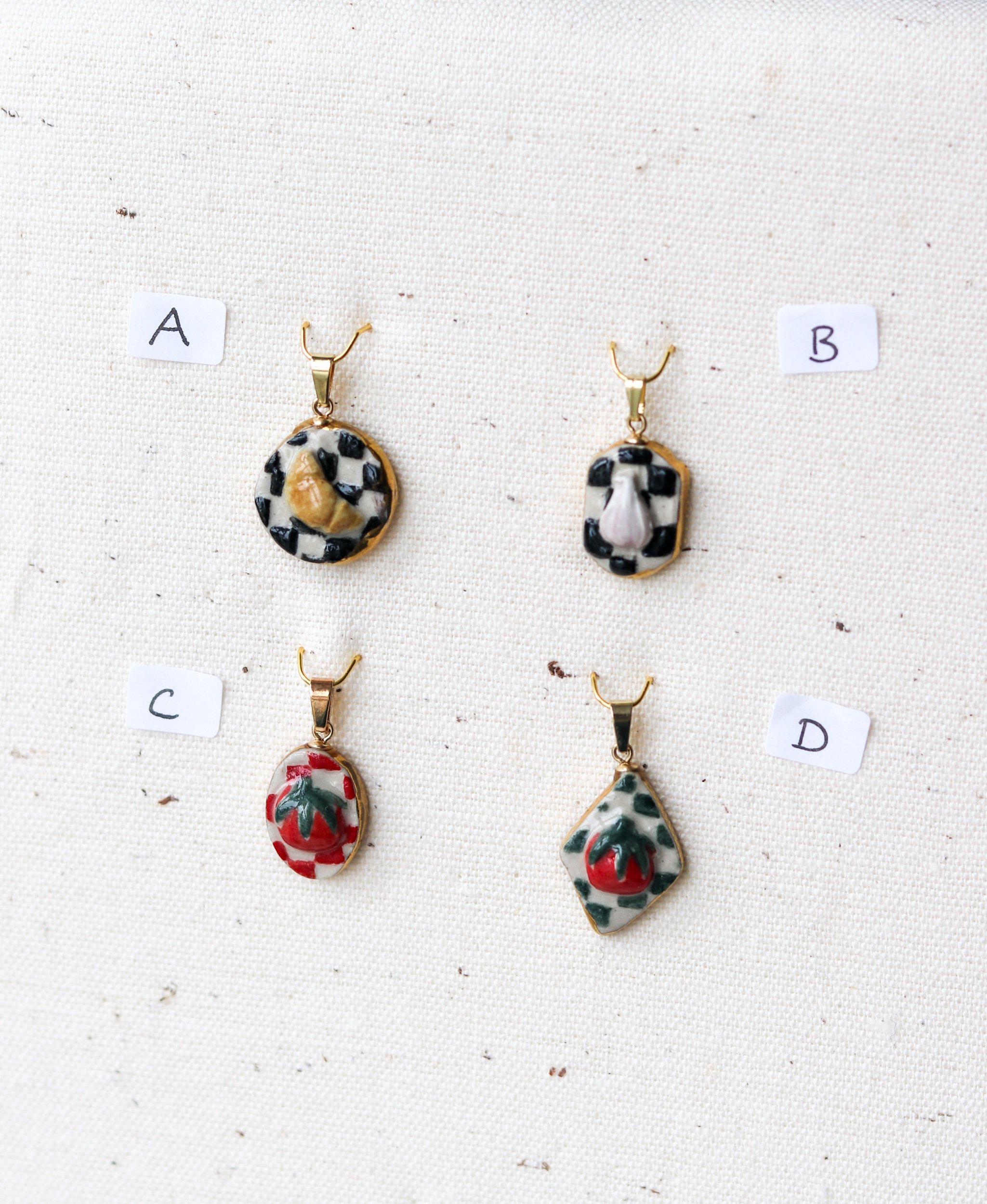 Each charm is hand formed and hand painted, so no two are alike.
